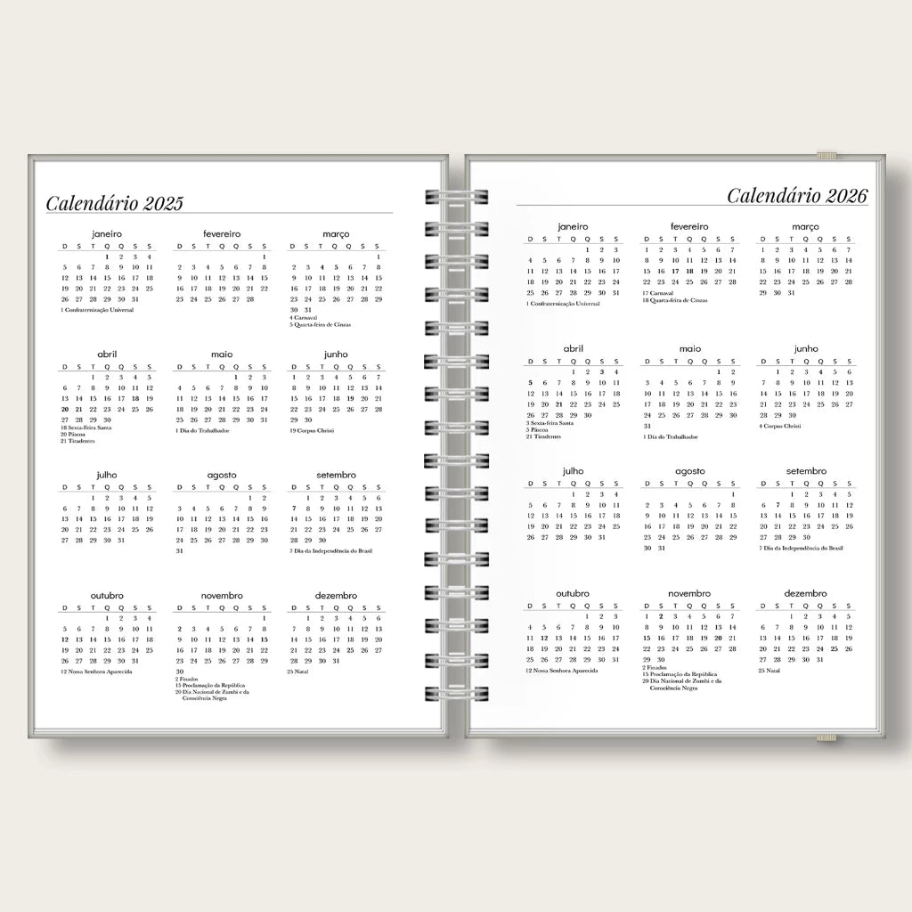- 2 Páginas iniciais contendo calendários;