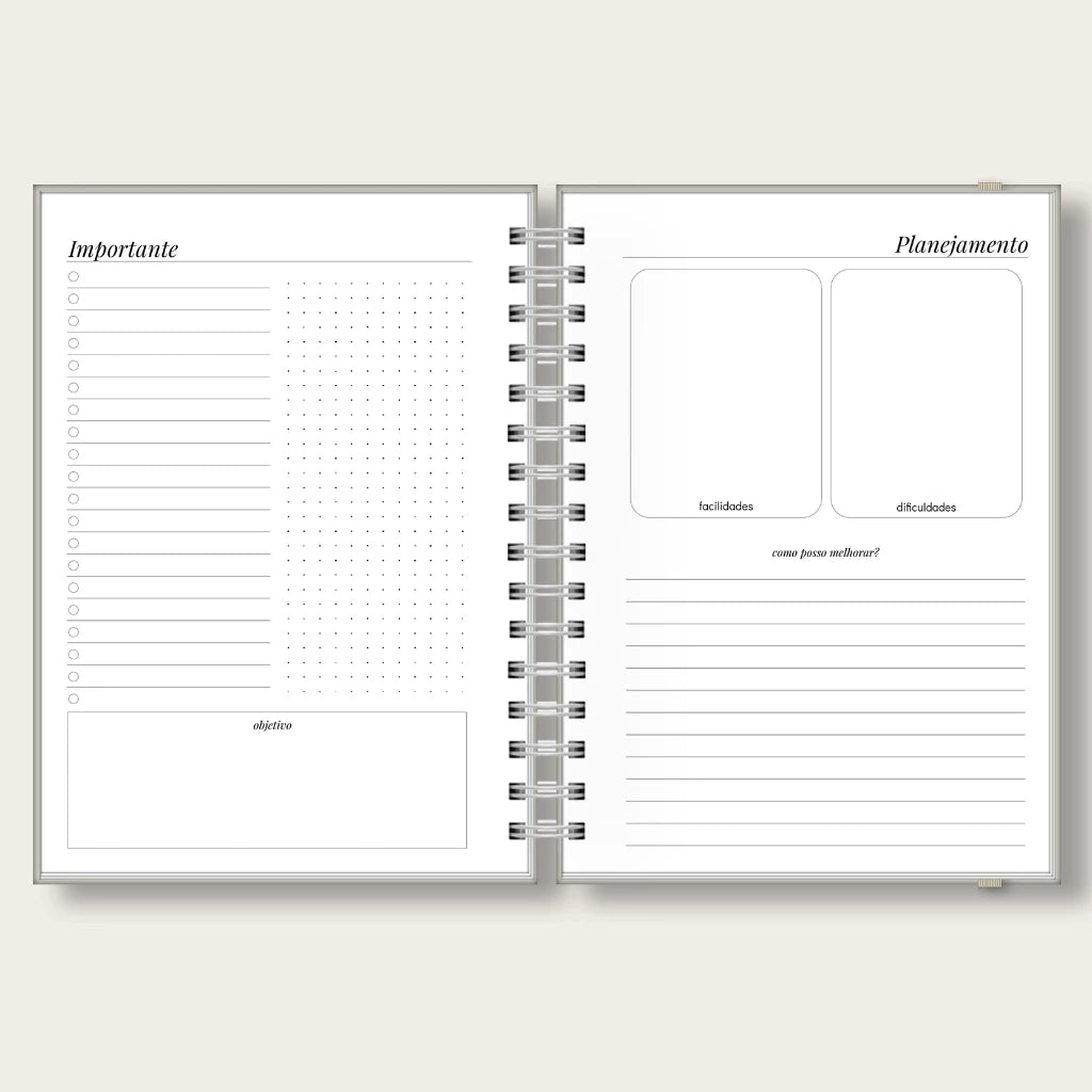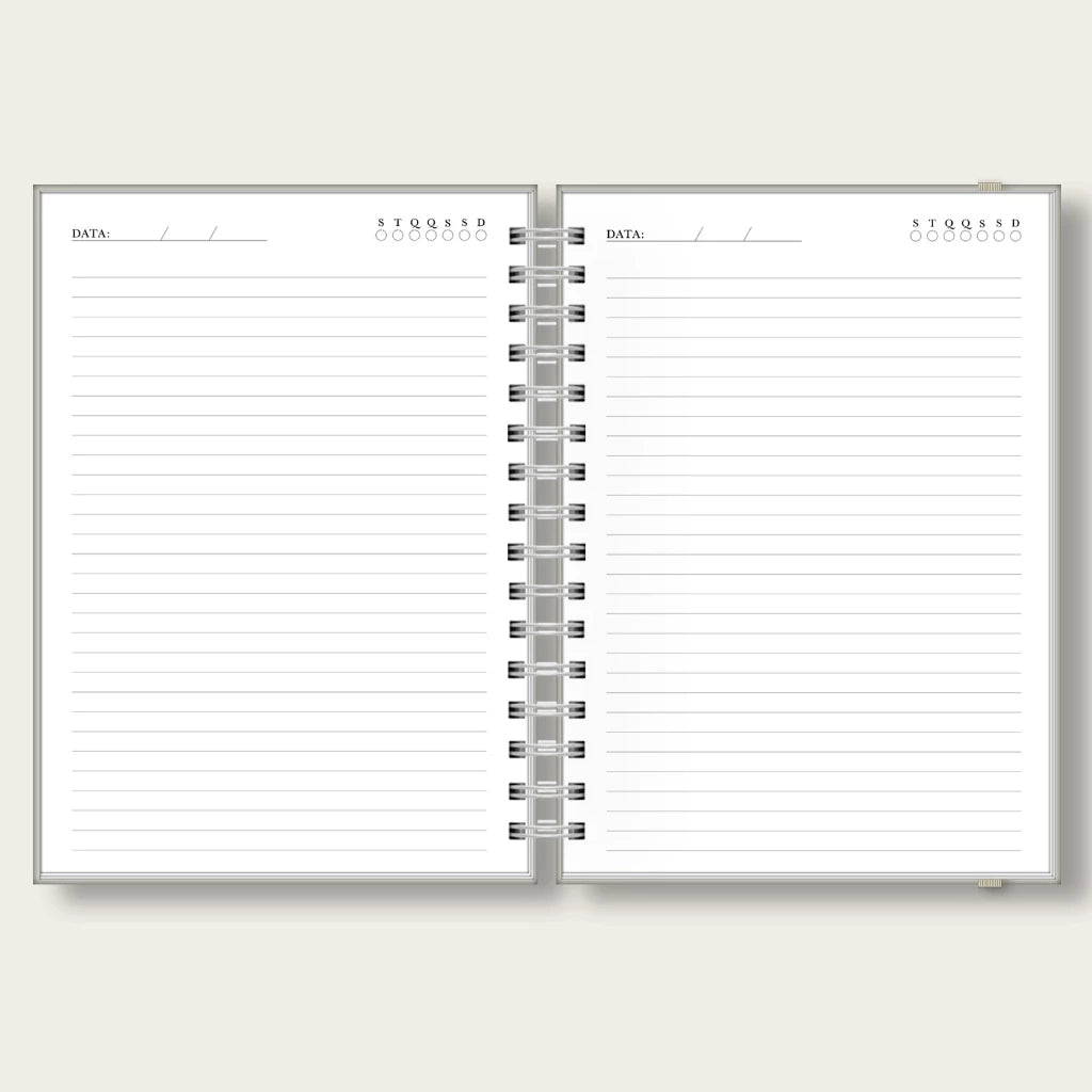 - Páginas para planejamento;200 páginas pautadas em layout minimalista e elegante.