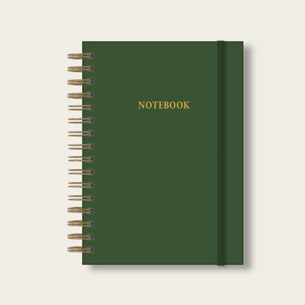 - Wire-o (Espiral) metálico na cor dourada;