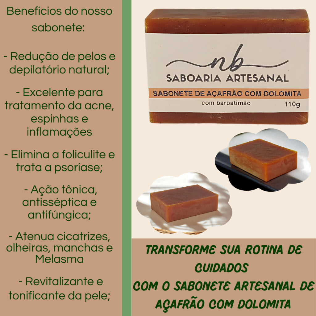 O Sabonete de Açafrão e Dolomita Clareador foi desenvolvido para quem busca uma pele mais lisa, uniforme, iluminada e bem cuidada de forma natural e consciente.