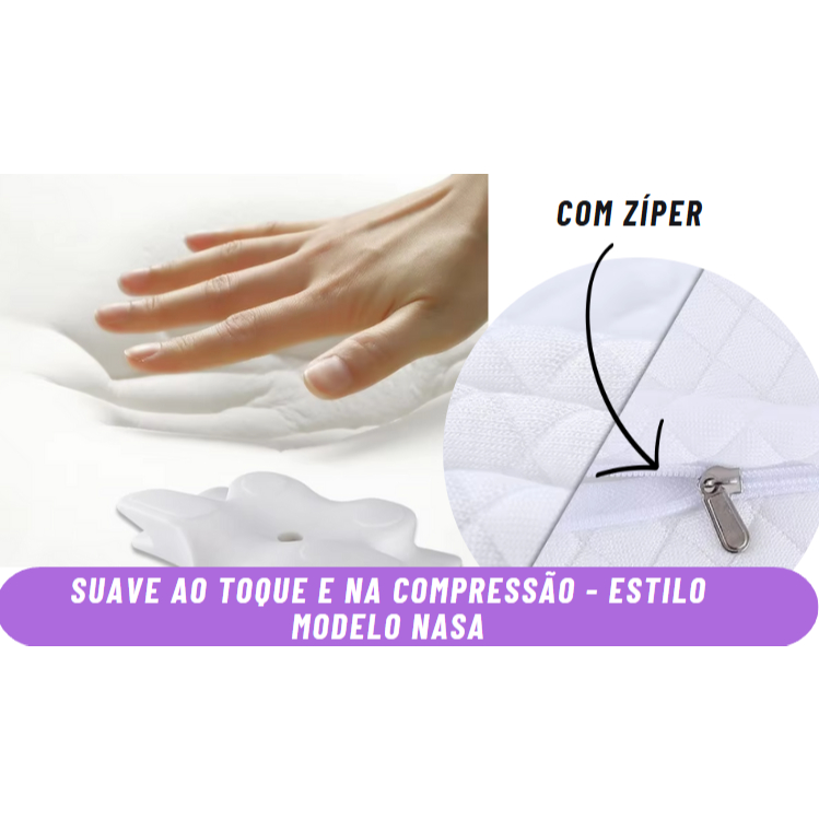 O material viscoelástico oferece suporte firme e confortável, reduzindo pontos de pressão. O travesseiro é indicado para quem dorme de lado, de barriga para cima ou para baixo, especialmente para pessoas que buscam mais conforto cervical e melhor postura ao dormir.